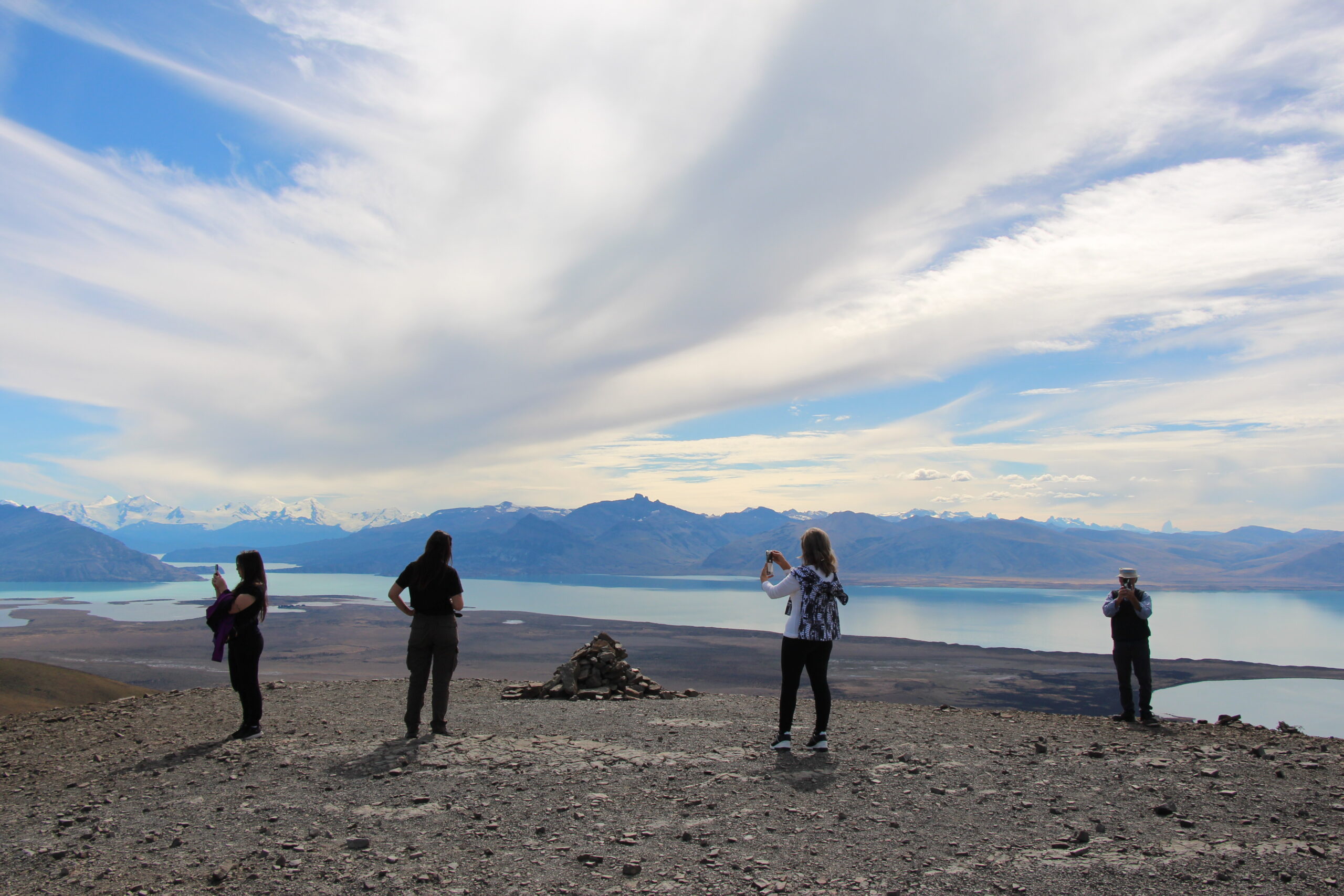| Ascenso y punto panorámico. Detención a 450 msnm para fotografías y vistas del Lago Argentino, la Boca del Diablo y el Puerto Punta Bandera.
